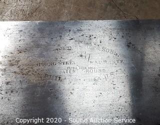 Item Description: 4.5'ft & 5.5'ft digging bars, solid steel. Crosscut saw is Henry Disston & Sons, logo printed on the blade.