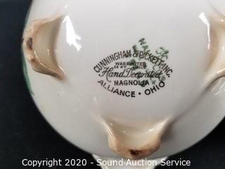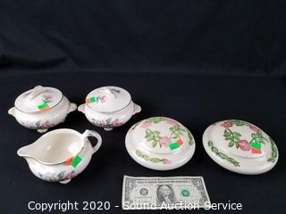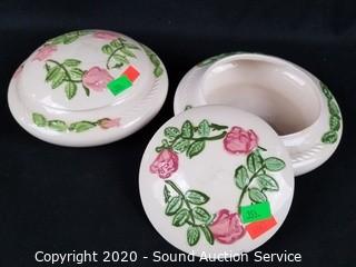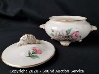 Item Description: Powder dishes have some chips, lid on one has been repaired.