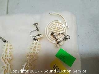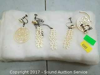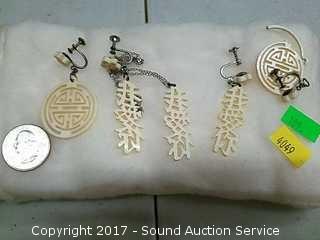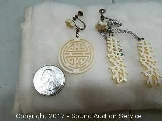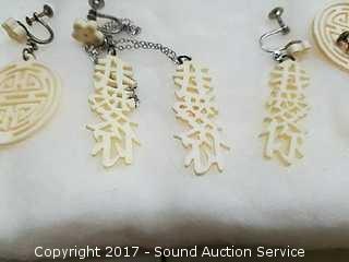 One of the sets of earrings is damaged. Pendant is approx. 2.5" long.