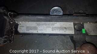 Believe it mounts to a bumper. Maximum loaded trailer weight 2000 lbs. Maximum loaded tongue weight 2000 lbs. Approx. 34" wide. Looks to be missing a chain.