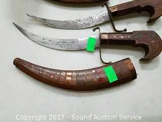 Lot #0182: Hand Crafted Wooden Handle Scimitar Letter Openers