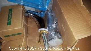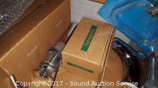Lot #0120: NEW Hansgrohe Faucet w/Drains & NIB Towel Ring