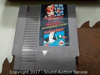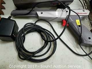 Game includes: Original Super Mario Brothers & Duck Hunt with gun. No RF cable. Powers on. Model NES-001