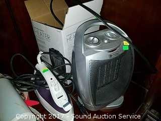 Lot #0041: Portable Ceramic Heater w/Box & Steam Iron