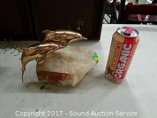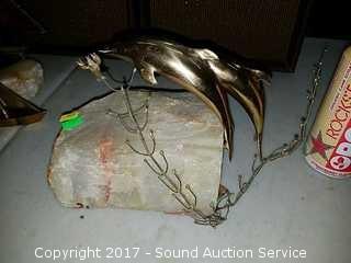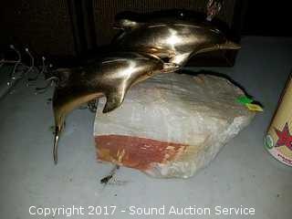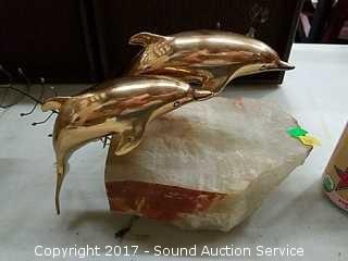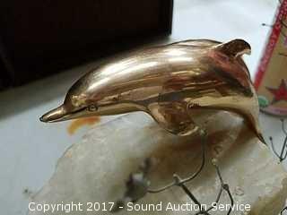 Lot #0185: Signed Curtis Jere Brass Dolphin on Quartz Stand