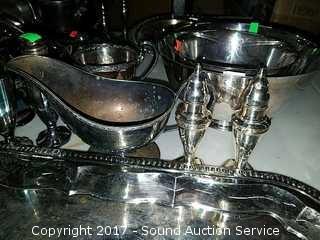 Lot #0192: Vintage Silverplate Dishes & Serving Pieces