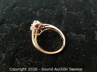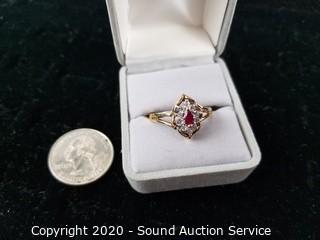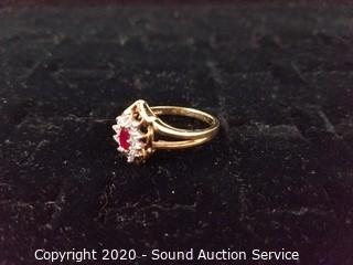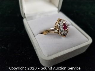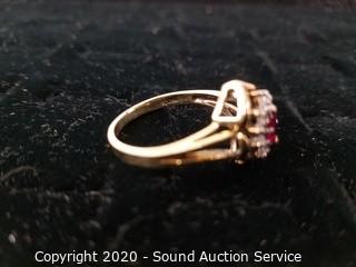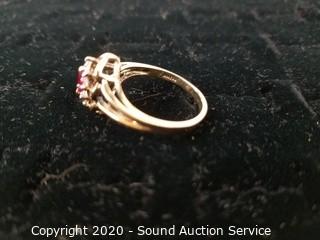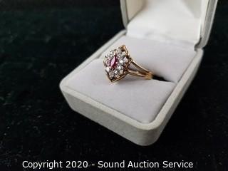 Lot #0198: Beautiful FTJ 10K Gold, Spinel & CZ Ring S:10