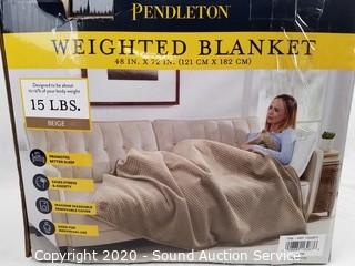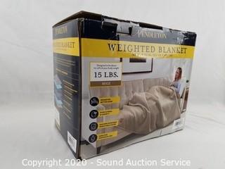 Lot #0066: Like New Pendleton 15lb Beige Weighted Blanket