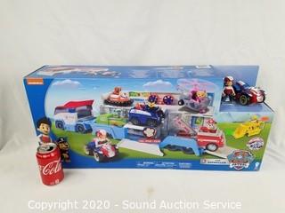 Lot Details: Box has been opened. Appears complete. The PAW Patroller is the ultimate rescue vehicle and can transport 3 vehicles inside, and display 6 vehicles when opened up It comes with Ryder and his ATV vehicle Store it in the back and of the Patroller and get ready to save Adventure Bay.