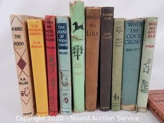 Lot Details: Includes 1949 "Our Country Advances", 1954 "Black Beauty", 1950 "The House at Pooh Corner", 1950 "When We Were Very Young", 1942 "The Adventures of Mr. Mocker", 1950 "Now We Are Six", 1918 "When the Cock Crows", 1950 "Winnie the Pooh", 1967 "Family Pony", 1963 "Brer Rabbit Book", 1917 "Woo-Uff the Lion" and undated "The Treasure Hunters".