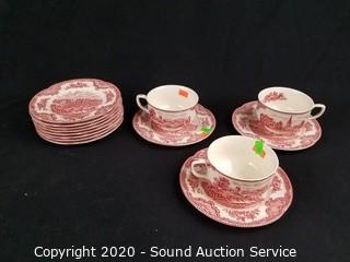 Lot #0124: 14pc Red Johnson Bros "Old Britain Castles" China
