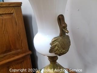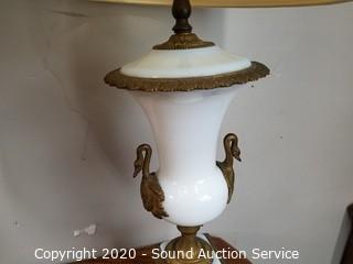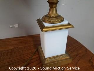 Lot #0025: 2 Vtg. Milk Glass & Brass Dual Light Table Lamps