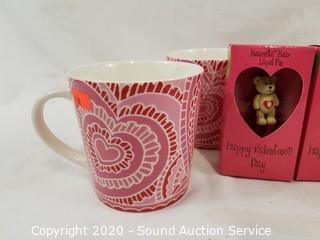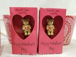 Lot #0196: 4 Starbucks Love Mugs & 2 Lapel Pins