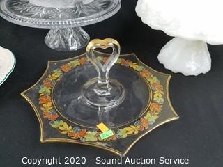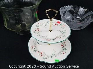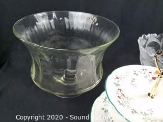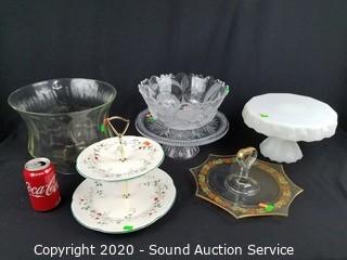 Lot Details: Hors D'oeuvres plate, cake plates, fruit bowl and punch bowl.