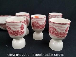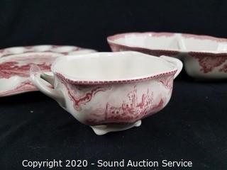 Lot #0123: 8pc Red Johnson Bros "Old Britain Castles" China