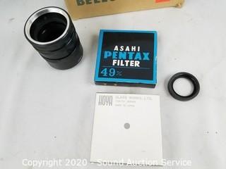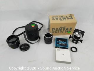 Lot #0136: Asahi Pentax Lens, Bellows Unit & Filters