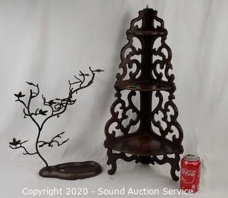 Lot Details: Tree is 17.5" x 13", believe it is used for earrings? Corner shelf is 26" x 12".