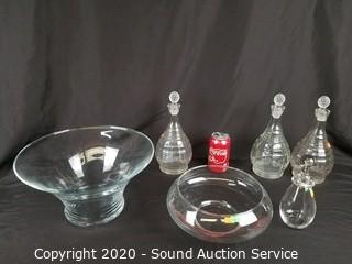 Lot #0094: Clear Glass & Crystal Decanters & Console Bowls