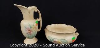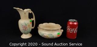 Lot #0273: Hull Pottery Iris Ewer & Dogwood Low Bowl