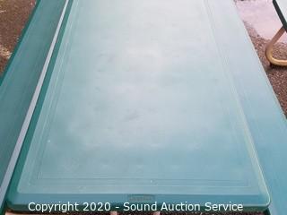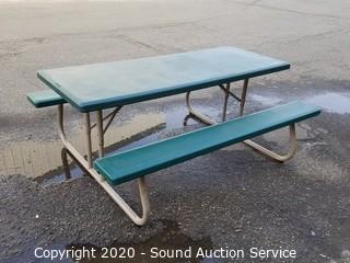 Lot Details: Steel frame green resin top. Some minor weathering. 29" H x 72" x 55".