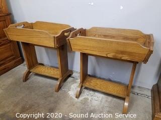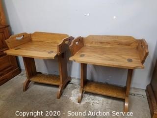 Lot #0022: Pair of Unique Oak Drop Side Tables