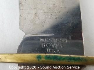 Lot #0003: Vtg. Western Fixed Blade Bowie Knife w/Sheathe