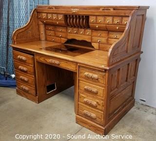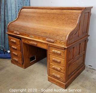 Lot #0007: Winners Only Oak Roll-Top Computer Desk