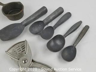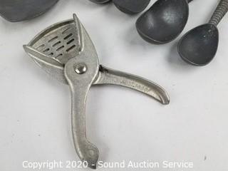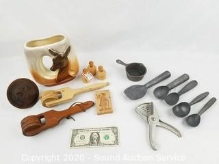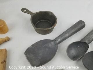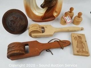 Lot #0026: Wood Cookie Presses & Vtg Utensils