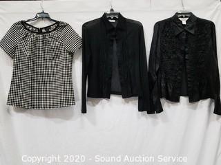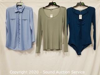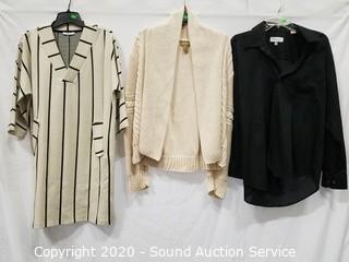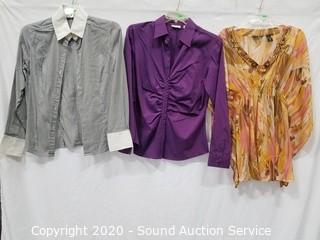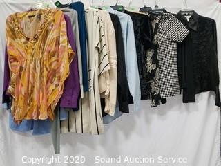 Lot Details: 3 are size large, the rest are medium. Includes New York & Co., Antilia Femme, Charlotte Russe, Zara, Peck & Peck, Yves St. Laurent, Hill & Archer, Kensie Jeans, Elyse Hart, Worthington, Self Esteem and Allison Taylor. All in excellent condition, some may have original tags.
