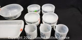 Lot #0148: 15pc Glasbake Leaf Print Cookware & Dishes