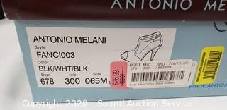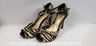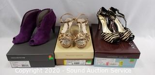 Lot Details: Includes Vince Camuto merlot true suede heeled shoes, Antonio Melani zebra striped heels and Franco Sarto snakeskin print platform shoes. All like new with original boxes.