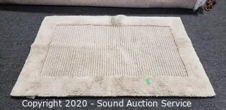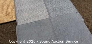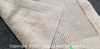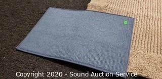 Lot Details: Reversible 24" x 36" bathroom rug, has a couple dirty spots. 12" x 18" and 18" x 24" light blue rugs.