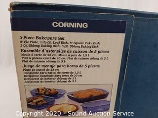 Lot #0072: 5pc Pyrex Cobalt Blue Bakeware Set