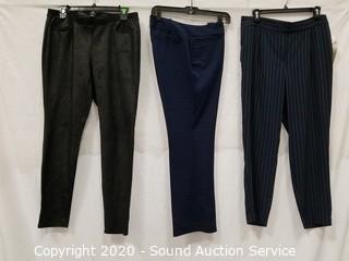Lot Details: Includes Romeo & Juliet leather skirt size large, Loft skirt size large petite, Premise size large, Classic Fit S:10 slacks, 7th Avenue S:10 slacks, ABS Platinum size:10, Cynthia Rowley S:10 slacks, Raffaela S:10 pants. All in excellent condition, some may have original tags.