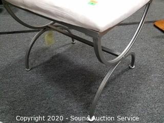 Lot Details: Metal frame with microfiber upholstery. 18" H x 16" x 20".