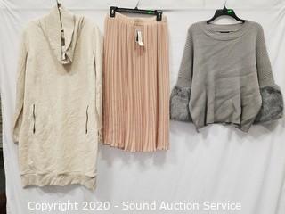Lot Details: Includes Fate faux fur cuffed sweater, Adiva skirt, Loft sweater dress, Catherine blouse and Anne Taylor outfit (sweater, blouse and slacks) S:12P. All in excellent condition, some may have original tags.