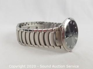 Lot Details: The minute hand is not attached, set with 12 diamonds. Water resistant, stainless band with original box and manual. Has original $375 price tag.