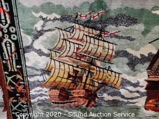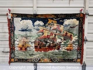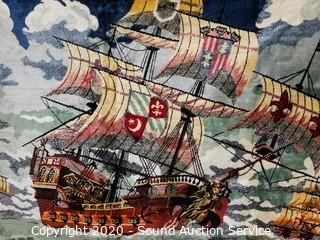 Lot #0047: Vtg. 69x47" Ship Tapestry