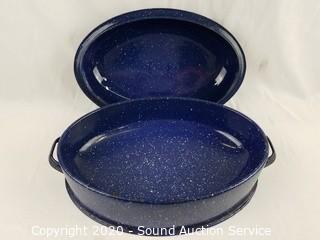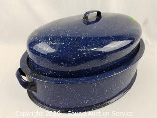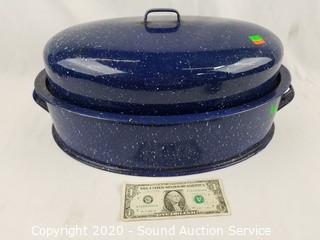 Lot #0088: Vtg. Blue Enamelware Domed Hollow Bottom Roaster