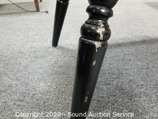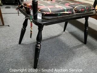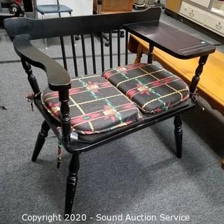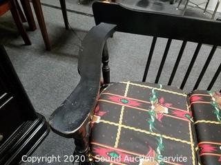 Lot Details: Black finish with tie on chair pads & banister back. 28" H x 32" W x 18" D.