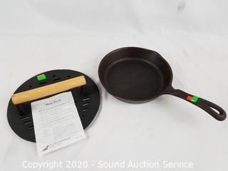 Lot #0154: Wagner 8" Cast Iron Skillet & Meat Press
