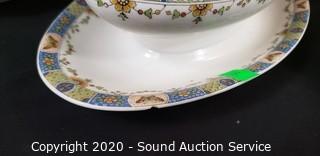 Lot Details: Includes 8 dinner plates, 9 lunch plates, 11 berry bowls, (7) 6" bowls (one has a chip), gravy boat (has a chip), 4 saucers, 8 snack plates, (9) 7.5" bowls, 8" covered server, 8" server, 9" and 10" serving bowls and 16" platter.