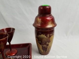 Lot Details: Includes shaker, tray and 6 cordials. Possibly hand painted.