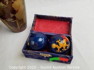 Lot #0153: Asian Lacquer Ware Drink Set & Baoding Balls