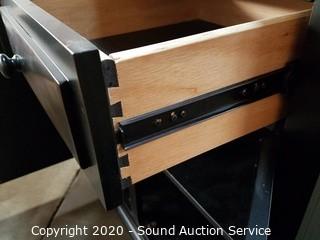 Lot Details: 2 drawers, pull out preparation surface and lower cabinet. In excellent condition. Dovetail joinery. 39" x 44" x 19.5".