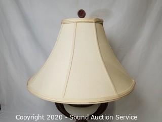 Lot Details: Fabric shade, 20" diameter. 30" x 12". In excellent condition.