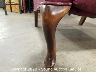 Lot Details: Upholstery is in good condition, legs have some scuffs. 40" x 30", 19.5" to seat.