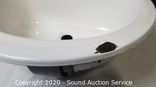 Lot Details: 12pk 48 sq. ft. 2x2ft Spectratile Roof Tiles, Briggs 19" White Round Lavatory Porcelain Sink, Church White Elongated Toilet Seat, 45ct Eaton In-Line Click-On Outlets, New Honeywell Round Non-Programmable Thermostat, 6 Filtrete 3M 14x14x1 Air Filters.