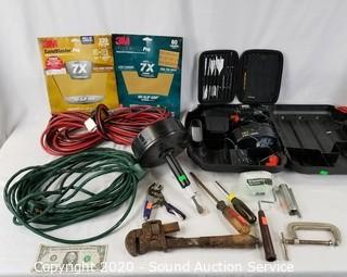 Lot #0119: Extensions Cords, Cordless Drill, Hand Tools &More
