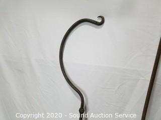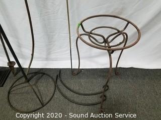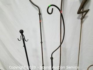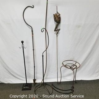 Lot Details: Plant stand is wrought iron. Largest shepherd's hook is 78" tall.